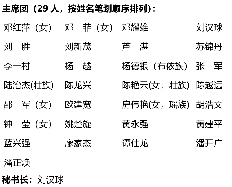 清远市第八届人民代表大会第六次会议主席团和秘书长名单